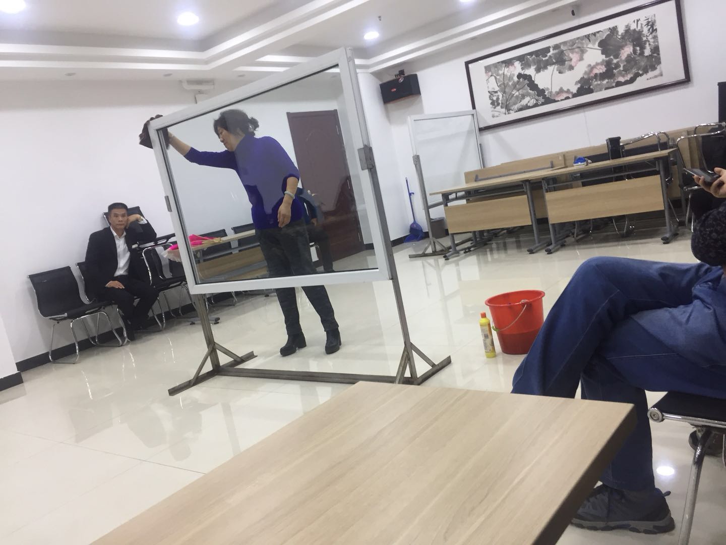 為提高公司管理人員基礎(chǔ)技能,潔霸公司利用周四內(nèi)部員工培訓(xùn)的時(shí)間組織了一次系統(tǒng)的內(nèi)部管理人員檫玻璃培訓(xùn),隨后并進(jìn)行了以組為單位的檫玻璃競(jìng)賽。