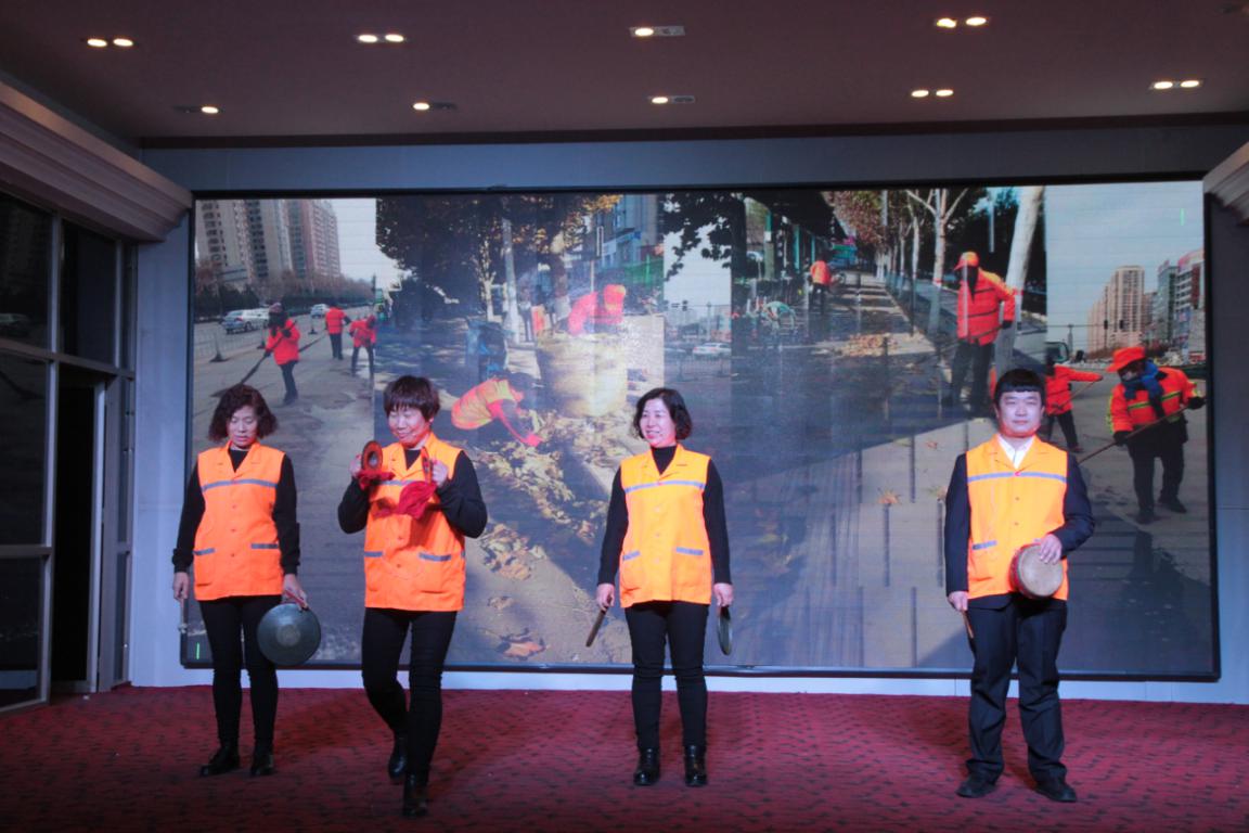 保潔部的三句半“夸夸我潔霸環(huán)衛(wèi)工”,向大家展示著有這么一群人,他們身穿橘色制服,穿梭于大街小巷,他們?nèi)蝿谌卧,起早摸黑,從事著城市最臟、最累的工作。他們就是我們的“城市美容師”——環(huán)衛(wèi)工人。