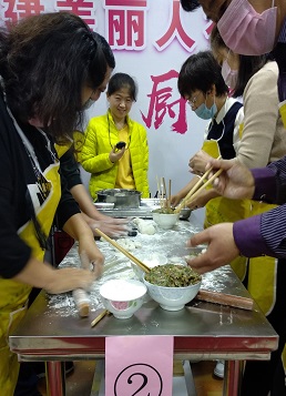 各組女神在在精心展示自己的廚藝,為本小組爭(zhēng)光。