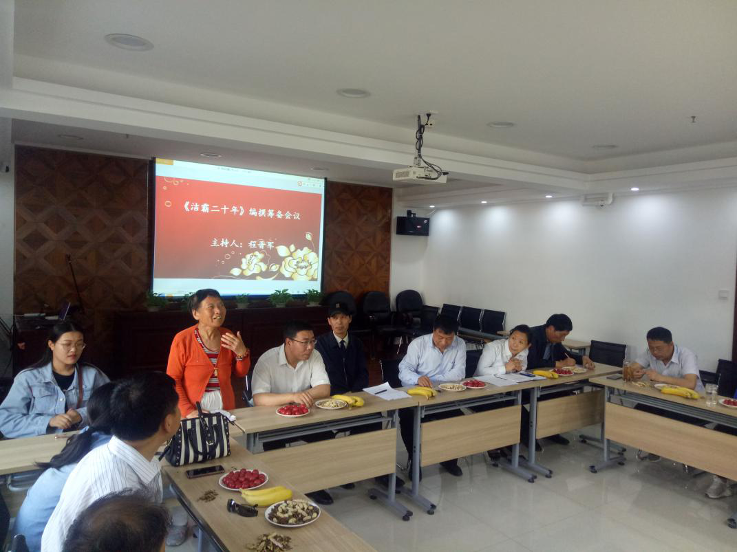 2019年5月17日,公司在會議室召開《潔霸二十年》編撰籌備會議,出席本次會議的有公司的主要領(lǐng)導(dǎo),部門經(jīng)理、項目經(jīng)理、主管、科員,有部分曾經(jīng)在潔霸工作過的同志,還有個別邀請到的作家等,公司程總主持了本次會議。
