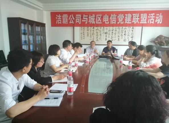 5月27日下午,潔霸公司黨支部與城區(qū)電信東城西城聯(lián)合黨支部開展了黨建聯(lián)盟活動(dòng)。首先雙方對公司的概況以及黨支部成員的構(gòu)成做了詳細(xì)的介紹?偨(jīng)理程晉軍及支部書記李山虎對城區(qū)電信公司黨支部成員的到來表示了熱烈的歡迎。