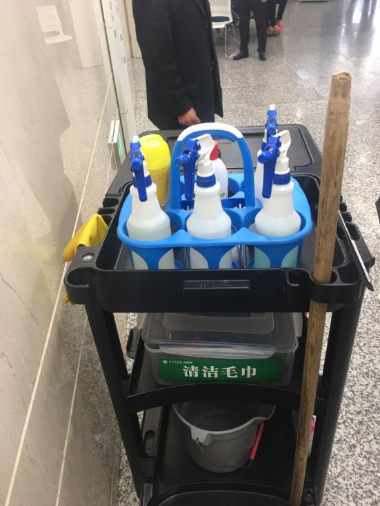保潔車干凈、整潔、配備齊全。從物品的分類,合理的擺放等細節(jié)方面充分體現(xiàn)了公司的管理方式,保潔員的整體素質(zhì)。