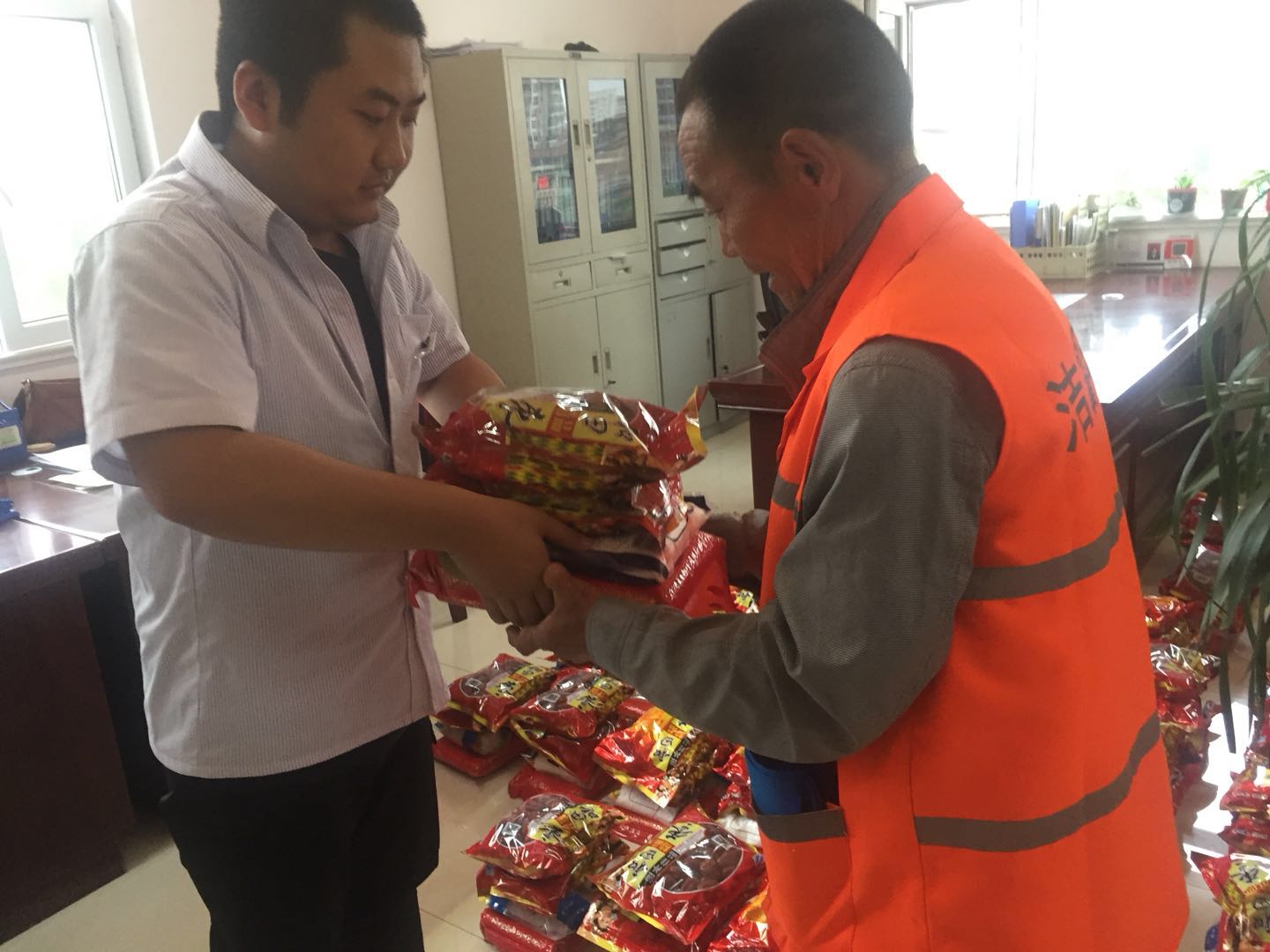 端午節(jié)來臨之際,為弘揚(yáng)傳統(tǒng)文化,我公司按照傳統(tǒng)習(xí)俗為環(huán)衛(wèi)工準(zhǔn)備了節(jié)日禮品。濃濃棕香,綿綿情長。6月5日下午,在一年一度的端午佳節(jié)來臨之際,一袋袋香香的糯米、大大的紅棗、白糖、冰糖飽含著公司關(guān)愛和祝福的端陽節(jié)福利由公司領(lǐng)導(dǎo)親自發(fā)放到為美化城區(qū)大街小巷作出默默奉獻(xiàn)的公司環(huán)衛(wèi)工人手中。