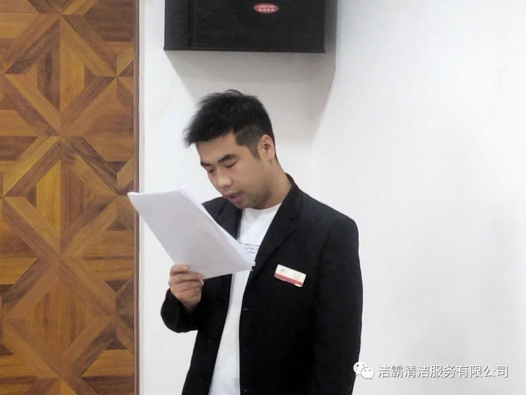 山西潔霸物業(yè)管理有限公司經(jīng)理李廣忠、會計(jì)張青霞、出納王頓花、晉城市合眾力勞務(wù)派遣有限公司經(jīng)理成濤、出納劉雨星、晉城市潔霸清潔服務(wù)股份有限公司工程部文員張陽楠、綜合辦公室車輛管理員呂衛(wèi)東、人力資源部文員呂利清、山西百潔物業(yè)服務(wù)有限公司出納王笑依次上臺作了述職匯報。