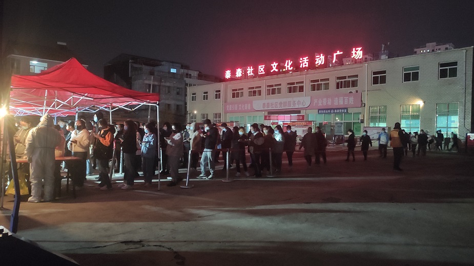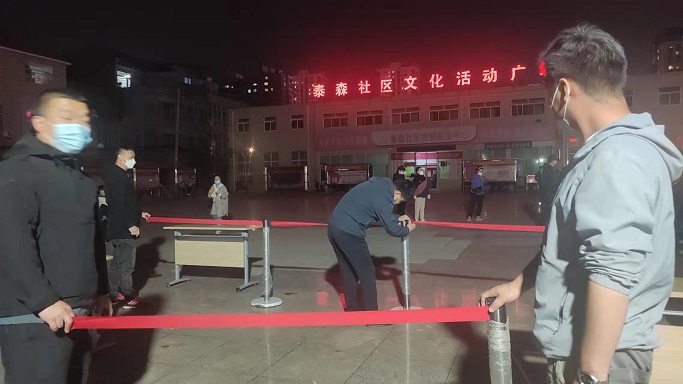 在泰森社區(qū)文化活動廣場,志愿者們擺桌子、拉警戒線、撐帳篷,齊心合力協(xié)助社區(qū)工作人員完成核酸檢測采樣點位設(shè)置及物資配備,同時積極引導(dǎo)社區(qū)居民進(jìn)行掃碼登記、測量體溫,提醒社區(qū)居民全程佩戴口罩,在排隊期間保持一米間距,組織居民做好分組,提前亮碼,核酸檢測完成后有序離場。雖然天氣較冷,但志愿者們毫無怨言,服務(wù)熱情很高,直至晚上12點,協(xié)助社區(qū)完成了9000余人的核酸檢測工作。