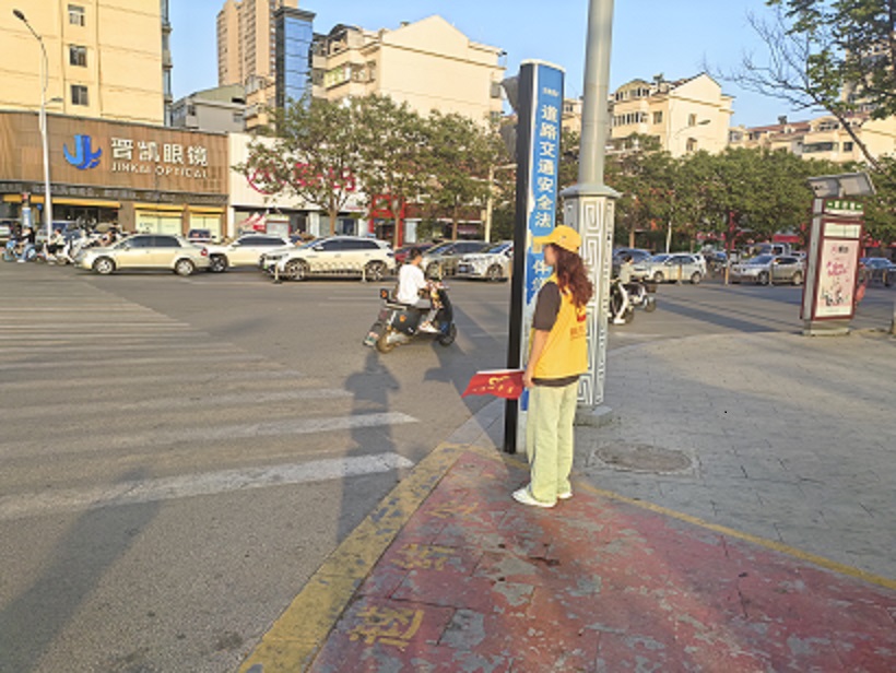 活動(dòng)中,支部黨員、入黨積極分子志愿者身穿志愿者馬甲,手持文明勸導(dǎo)旗子,化身為“交通安全守護(hù)員”。她們站在斑馬線兩側(cè),對(duì)行人闖紅燈、橫穿馬路、不走斑馬線等不文明行為進(jìn)行勸阻,引導(dǎo)電動(dòng)車等非機(jī)動(dòng)車輛按信號(hào)燈指示行駛、不越線停車、不逆行,對(duì)非機(jī)動(dòng)車走機(jī)動(dòng)車道、闖紅燈、逆行、不戴頭盔等交通違法行為進(jìn)行勸導(dǎo)糾正,糾正制止不文明交通行為,宣傳勸導(dǎo)廣大市民遵守交通法規(guī)和規(guī)則,維護(hù)交通文明和社會(huì)秩序,自覺養(yǎng)成良好的文明交通習(xí)慣,時(shí)刻牢記遵法出行,確保自身及他人安全,共同營(yíng)造平安、和諧、有序的道路交通環(huán)境。