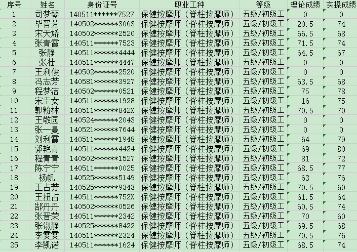 2024年5月24日第2批保健按摩師初級認(rèn)定人員成績公示