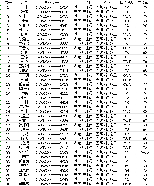 2024年7月14日第21批養(yǎng)老護(hù)理員初級(jí)認(rèn)定人員成績(jī)公示