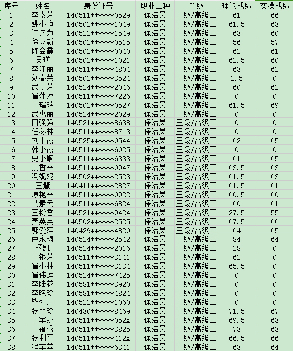 晉城市潔霸清潔服務股份有限公司職業(yè)技能等級認定中心現(xiàn)將2024年9月1日認定人員成績公示如下: