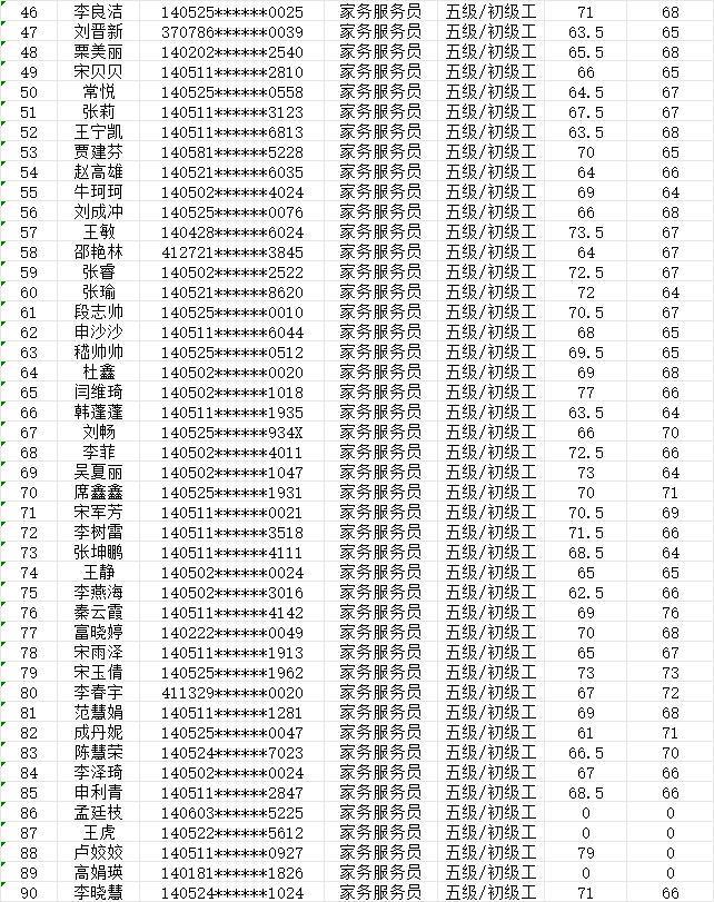2024年9月28日第40批家政服務(wù)員初級(jí)認(rèn)定人員成績公示