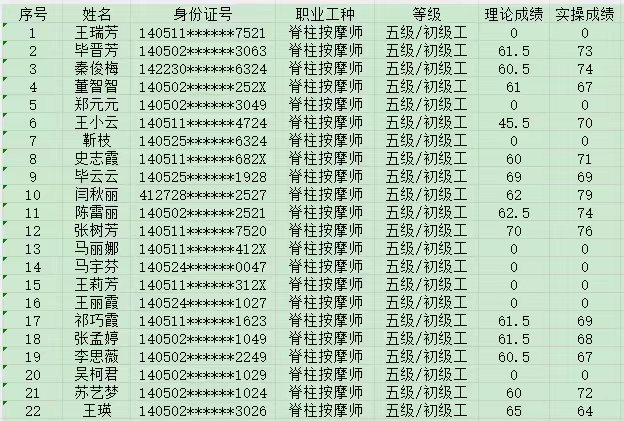 晉城市潔霸清潔服務(wù)股份有限公司職業(yè)技能等級認(rèn)定中心現(xiàn)將2024年10月13日認(rèn)定人員成績公示如下: